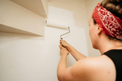 Hvis væggen tidligere har været malet i en mørk farve, kan det være en fordel at give den et lag hvid grundmaling først, så de nye farver fremstår klare og ensartede.