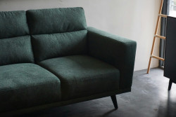 Sofaen består af en robust ramme i fyrretræ, der er sortlakeret for et moderne udtryk, samt en tyk futonmadras betrukket med en blanding af bomuld og polyester. Kombinationen giver både komfort og holdbarhed i daglig brug.